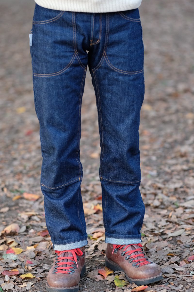 上記したデザインコンセプトを実現するには、やはり生地選びも慎重にならざるを得ません。私の考えるクライミングパンツとして最適なデニムに出会うまでには少々時間が掛かりました。今回のファブリック選びのポイントとしては、