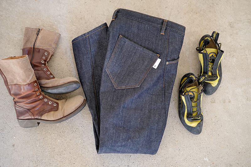 寒冷地でのクライミングを想定したフリースデニムは、冬の瑞牆山でのクライミングにはもちろん、