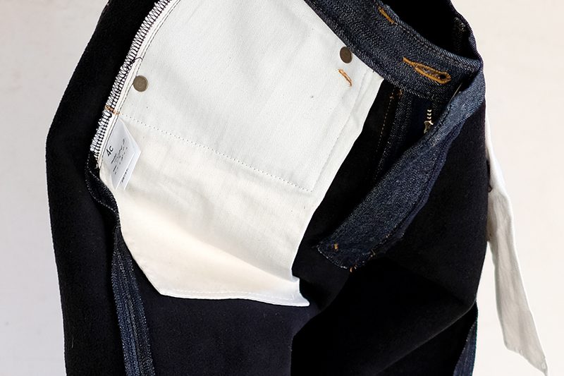 裏地に薄手のマイクロフリースをボンディングした生地は4cオリジナル。ヘリンボーン織のポケット布、ジッパーフライ仕様。